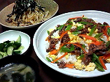「牛焼肉のごちそうちらし」・「もやしと豚肉の韓国風サラダ」
